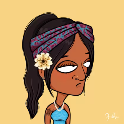 Collection Depressed Citizens Artist Juls Description ART. No team, no project, no future. Depressed Citizens is an urban & existential Art expression on Ordinals. In a parallel universe, "THEI" control us. DC unites against toxic society, encouraging critical thinking. 100% hand made collection that took Juls more than 6 months of daily work. Name Citizen#1643 Origin Asian & Pacific islander Gender Woman Necklace Pearl necklace Hat Printed headband Mustache Beard No beard Glasses No Glasses Earrings Upper lobe rings Hair Style High ponytail Clothes Sky blue halterneck top Tattoo Butterfly tattoo Star Background Without stars