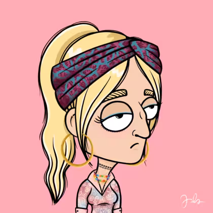 Collection Depressed Citizens Artist Juls Description ART. No team, no project, no future. Depressed Citizens is an urban & existential Art expression on Ordinals. In a parallel universe, "THEI" control us. DC unites against toxic society, encouraging critical thinking. 100% hand made collection that took Juls more than 6 months of daily work. Name Citizen#476 Origin Caucasian non hispanic Gender Woman Necklace Colorful layered necklace Hat Printed headband Mustache Beard No beard Glasses No Glasses Earrings Rook hoop Hair Style High ponytail Clothes Artsy pink shirt Tattoo No Tattoo Star Background Without stars