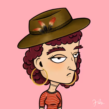 Collection Depressed Citizens Artist Juls Description ART. No team, no project, no future. Depressed Citizens is an urban & existential Art expression on Ordinals. In a parallel universe, "THEI" control us. DC unites against toxic society, encouraging critical thinking. 100% hand made collection that took Juls more than 6 months of daily work. Name Citizen#1702 Origin Caucasian non hispanic Gender Woman Necklace Choker Hat Fedora hat Mustache Beard No beard Glasses No Glasses Earrings Beading hoops Hair Style Curly Clothes Red stripe elbow-sleeve shirt Tattoo No Tattoo Star Background Without stars