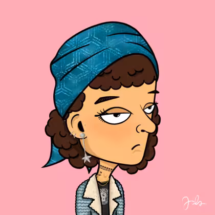 Collection Depressed Citizens Artist Juls Description ART. No team, no project, no future. Depressed Citizens is an urban & existential Art expression on Ordinals. In a parallel universe, "THEI" control us. DC unites against toxic society, encouraging critical thinking. 100% hand made collection that took Juls more than 6 months of daily work. Name Citizen#1516 Origin Caucasian non hispanic Gender Woman Necklace Gold layered necklace Hat Printed head scarf Mustache Beard No beard Glasses No Glasses Earrings Upper lobe rings Hair Style Curly Clothes BLM women shirt Tattoo Rose tattoo Star Background Without stars