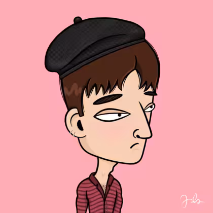 Collection Depressed Citizens Artist Juls Description ART. No team, no project, no future. Depressed Citizens is an urban & existential Art expression on Ordinals. In a parallel universe, "THEI" control us. DC unites against toxic society, encouraging critical thinking. 100% hand made collection that took Juls more than 6 months of daily work. Name Citizen#1932 Origin Caucasian non hispanic Gender Man Necklace Gold layered necklace Hat Black beret Mustache Beard No beard Glasses No Glasses Earrings Upper lobe rings Hair Style Short pixie Clothes Burgundy stripe skinny shirt Tattoo No Tattoo Star Background Without stars