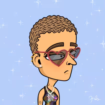 Collection Depressed Citizens Artist Juls Description ART. No team, no project, no future. Depressed Citizens is an urban & existential Art expression on Ordinals. In a parallel universe, "THEI" control us. DC unites against toxic society, encouraging critical thinking. 100% hand made collection that took Juls more than 6 months of daily work. Name Citizen#2844 Origin Hispanic Gender Woman Necklace Pearl necklace Hat No Hat Mustache Beard No beard Glasses Heart-shaped glasses Earrings Upper lobe rings Hair Style Short curly with gel Clothes Love is love one shoulder crop Tattoo Rose tattoo Star Background With stars