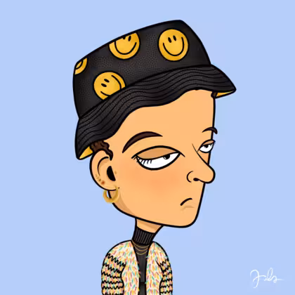 Collection Depressed Citizens Artist Juls Description ART. No team, no project, no future. Depressed Citizens is an urban & existential Art expression on Ordinals. In a parallel universe, "THEI" control us. DC unites against toxic society, encouraging critical thinking. 100% hand made collection that took Juls more than 6 months of daily work. Name Citizen#498 Origin Hispanic Gender Woman Necklace Gold layered necklace Hat Smiley bucket hat Mustache Beard No beard Glasses No Glasses Earrings Tragus star earring Hair Style Short curly with gel Clothes Black turtleneck women's sweater Tattoo No Tattoo Star Background Without stars