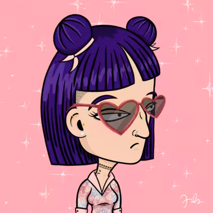 Collection Depressed Citizens Artist Juls Description ART. No team, no project, no future. Depressed Citizens is an urban & existential Art expression on Ordinals. In a parallel universe, "THEI" control us. DC unites against toxic society, encouraging critical thinking. 100% hand made collection that took Juls more than 6 months of daily work. Name Citizen#2296 Origin Caucasian non hispanic Gender Woman Necklace Choker Hat No Hat Mustache Beard No beard Glasses Heart-shaped glasses Earrings Tragus star earring Hair Style Mid-length mushroom with space buns Clothes Artsy pink shirt Tattoo Rose tattoo Star Background With stars