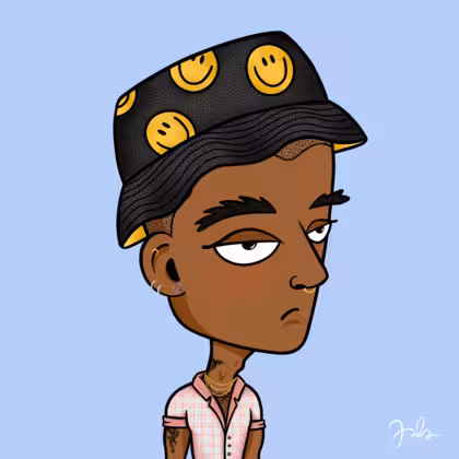 Collection Depressed Citizens Artist Juls Description ART. No team, no project, no future. Depressed Citizens is an urban & existential Art expression on Ordinals. In a parallel universe, "THEI" control us. DC unites against toxic society, encouraging critical thinking. 100% hand made collection that took Juls more than 6 months of daily work. Name Citizen#1433 Origin Hispanic Gender Man Necklace Gold layered necklace Hat Smiley bucket hat Mustache Beard No beard Glasses No Glasses Earrings Upper lobe rings Hair Style Shaved head Clothes Pink plaid deep v-neck shirt Tattoo Dragon tattoo Star Background Without stars