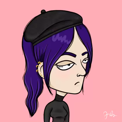 Collection Depressed Citizens Artist Juls Description ART. No team, no project, no future. Depressed Citizens is an urban & existential Art expression on Ordinals. In a parallel universe, "THEI" control us. DC unites against toxic society, encouraging critical thinking. 100% hand made collection that took Juls more than 6 months of daily work. Name Citizen#618 Origin Caucasian non hispanic Gender Woman Necklace No Necklace Hat Black beret Mustache Beard No beard Glasses No Glasses Earrings Helix ring trio Hair Style High ponytail Clothes Black turtleneck women's sweater Tattoo No Tattoo Star Background Without stars