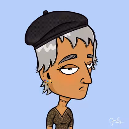 Collection Depressed Citizens Artist Juls Description ART. No team, no project, no future. Depressed Citizens is an urban & existential Art expression on Ordinals. In a parallel universe, "THEI" control us. DC unites against toxic society, encouraging critical thinking. 100% hand made collection that took Juls more than 6 months of daily work. Name Citizen#2442 Origin Hispanic Gender Woman Necklace Choker Hat Black beret Mustache Beard No beard Glasses No Glasses Earrings Chandelier earring Hair Style Shaggy shorts with bangs Clothes Old school brown printed shirt Tattoo No Tattoo Star Background Without stars