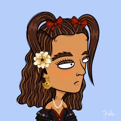 Collection Depressed Citizens Artist Juls Description ART. No team, no project, no future. Depressed Citizens is an urban & existential Art expression on Ordinals. In a parallel universe, "THEI" control us. DC unites against toxic society, encouraging critical thinking. 100% hand made collection that took Juls more than 6 months of daily work. Name Citizen#2118 Origin Hispanic Gender Woman Necklace Pearl necklace Hat Red bow Mustache Beard No beard Glasses No Glasses Earrings Tragus star earring Hair Style Long wavy with space ponytails Clothes Traditional black flowery dress Tattoo Rose tattoo Star Background Without stars