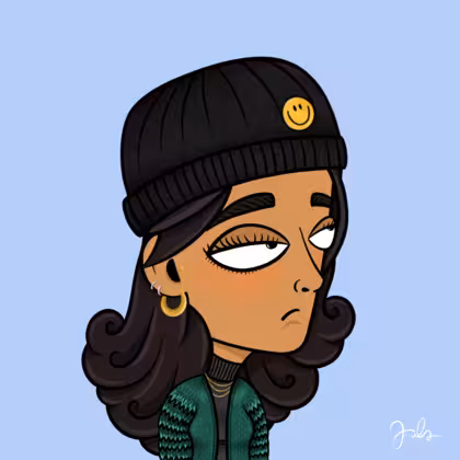 Collection Depressed Citizens Artist Juls Description ART. No team, no project, no future. Depressed Citizens is an urban & existential Art expression on Ordinals. In a parallel universe, "THEI" control us. DC unites against toxic society, encouraging critical thinking. 100% hand made collection that took Juls more than 6 months of daily work. Name Citizen#388 Origin Hispanic Gender Woman Necklace Gold layered necklace Hat Smiley beanie Mustache Beard No beard Glasses No Glasses Earrings Upper lobe rings Hair Style Long wavy Clothes Black turtleneck women's sweater Tattoo No Tattoo Star Background Without stars