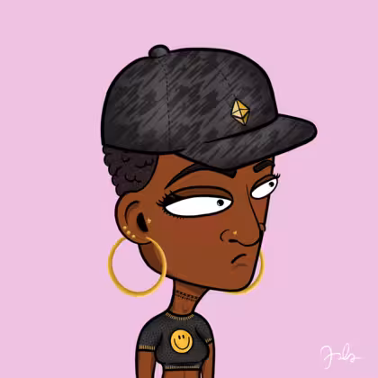 Collection Depressed Citizens Artist Juls Description ART. No team, no project, no future. Depressed Citizens is an urban & existential Art expression on Ordinals. In a parallel universe, "THEI" control us. DC unites against toxic society, encouraging critical thinking. 100% hand made collection that took Juls more than 6 months of daily work. Name Citizen#2599 Origin African descendant Gender Woman Necklace Choker Hat Bad cap Mustache Beard No beard Glasses No Glasses Earrings Tragus star earring Hair Style Short tight curls Clothes Smiley crop top Tattoo No Tattoo Star Background Without stars