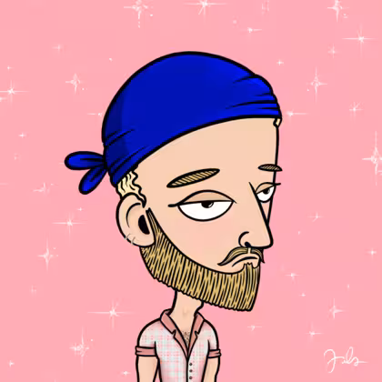 Collection Depressed Citizens Artist Juls Description ART. No team, no project, no future. Depressed Citizens is an urban & existential Art expression on Ordinals. In a parallel universe, "THEI" control us. DC unites against toxic society, encouraging critical thinking. 100% hand made collection that took Juls more than 6 months of daily work. Name Citizen#395 Origin Caucasian non hispanic Gender Man Necklace No Necklace Hat Deep blue bandana Mustache Beard Garibaldis beard Glasses No Glasses Earrings Upper lobe rings Hair Style Short curly with gel Clothes Pink plaid deep v-neck shirt Tattoo No Tattoo Star Background With stars